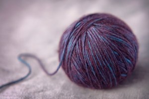 In an effort to find the perfect shade of aubergine to knit Cookie A’s ‘Marlene’ socks, I thought I’d have a go at hand dyeing yarn with food colouring. Although it hasn’t turned out as I envisaged (I’d prefer less colour variation) the result is quite pretty, even if it does rather remind me of a massive bruise!
