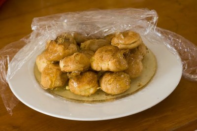 But I think I enjoyed it even more sneaking leftovers out of the fridge to go with my morning coffee!  Lots of choux pastry puffs filled with vanilla custard and stuck together with spun sugar, which became a bit gooey overnight in the fridge, but still edible in my book!  But then I have been known to consume sweetened condensed milk straight from the tin.