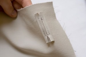The width can be whatever you like – I like 3mm welts, so the width of my finished buttonholes is 6mm. I cut these welts 28mm wide (24mm + 4mm cloth allowance):