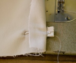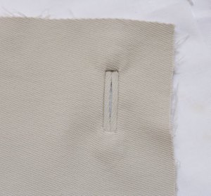 I always make a sample buttonhole before beginning one on the actual garment, it is handy to check that you have cut the correct width of welt, determine how far you need to clip, pressing technique, and all those little reassuring things, you know, before you cut into the real thing…..