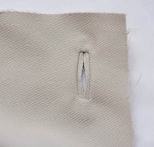 I've just made my second bound buttonhole using this method. The first was using Coletterie's method. My second bound buttonhole is flatter and sits nicely. The first is very bulky.