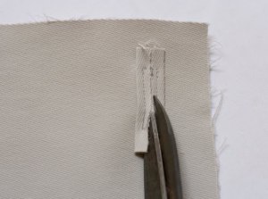 Now cut the actual buttonhole opening. I first fold it in half and nick the middle with the tip of my shears: