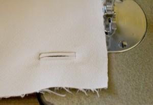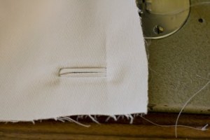 To stitch down the ends of the buttonholes, first ensure the corner is sitting square: