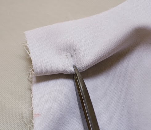 Then cut towards the corners, stopping 6mm short of the ends. Clip diagonally into the corners, clipping close enough that your corner will turn smoothly, without clipping past the corner. This is where you will be thankful that you did a test buttonhole – you did do a test buttonhole, didn’t you? 😉