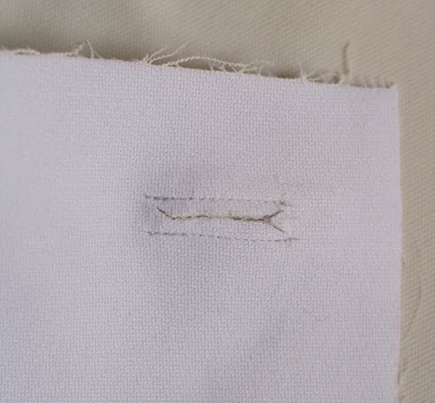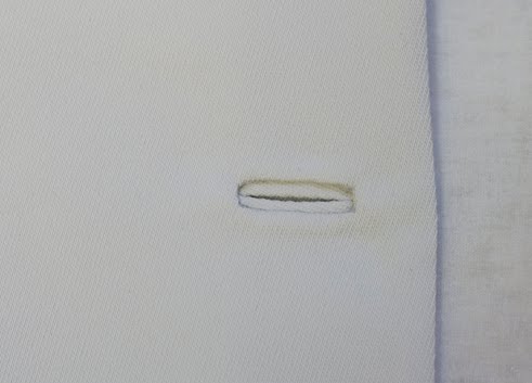 I've just made my second bound buttonhole using this method. The first was using Coletterie's method. My second bound buttonhole is flatter and sits nicely. The first is very bulky.