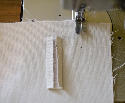 To stitch down the ends of the buttonholes, first ensure the corner is sitting square: