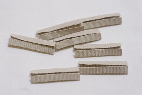 The width can be whatever you like – I like 3mm welts, so the width of my finished buttonholes is 6mm. I cut these welts 28mm wide (24mm + 4mm cloth allowance):