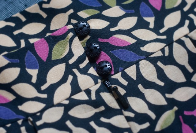 That's a lovely skirt and fabric – I love the addition of the 3 buttons. Would love to see your tutorial on how you made this skirt….pleeeease!