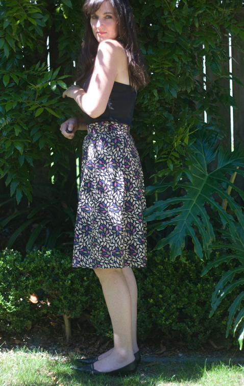 This skirt is good to wear right now (high summer) with a camisole and flats, but will also be good for autumn and winter with tights and a camel cardigan, or pink or purple… Yay, a transitional piece!