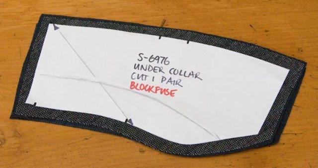 I’m starting with my under collar – pair them together and lay your pattern on top: