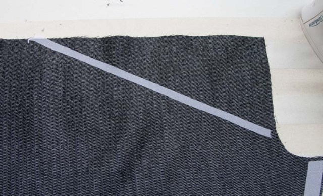 If you need to you can ease the roll line onto the tape up to 1cm – cut your fusetape to the finished measurement (roll line, less seam allowances, less 1cm)  fuse the ends in place, then distribute the ease evenly over the remaining length.  Fuse lightly at first, check it’s even, and then fully fuse: