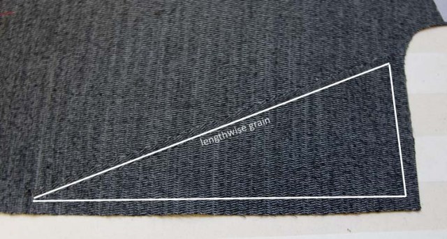 A chest reinforcement usually cut on the bias, is supposed to fill in the hollow between shoulder and bust.  I’ve never done this either, so I am going to try it on my coat to see if the effect is worth it: