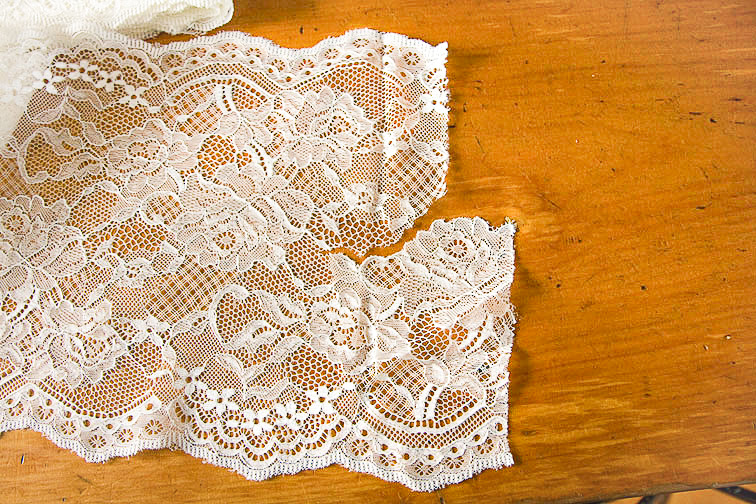 - strength – we will be attaching the straps directly to the lace so it must be able to take some strain. Most laces look deceptively delicate but are actually quite strong – but I wouldn’t use the antique stuff off your great-grandmothers wedding dress just in case!