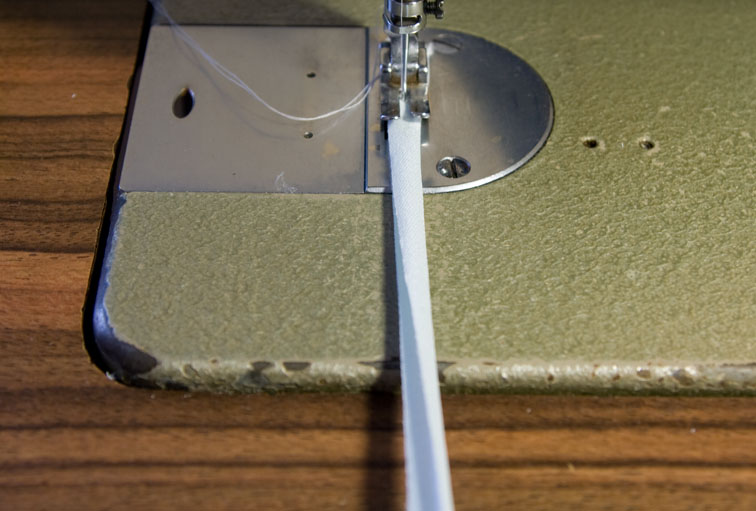To make spaghetti straps, fold the strap lengthwise right sides together and stitch 3mm from the fold: