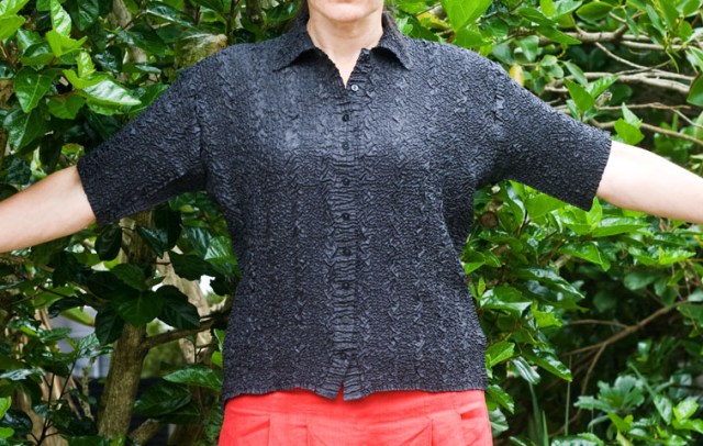 Then I reshaped the front and back armholes, taking about 4cm off the shoulder length.