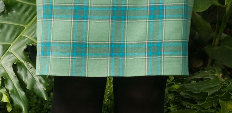 I snapped a few shots while hemming my Turquoise Tartan skirt:
