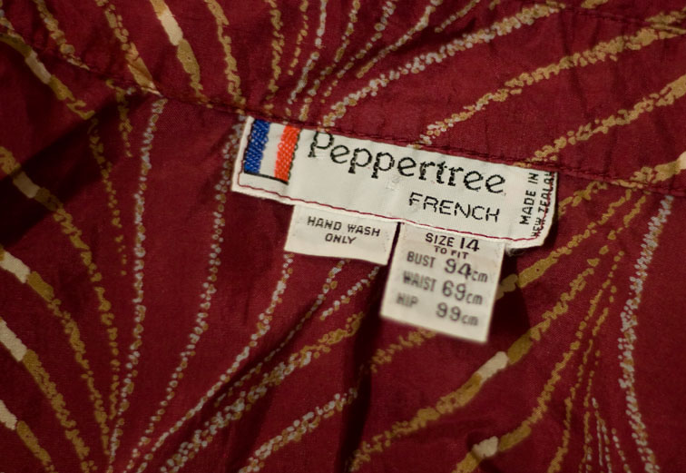 3. This is so interesting. I haven't heard of any of them except Peppertree. I can't believe there were so many different clothing labels in NZ. I guess it was because of the high import taxes. These days hardly anything is made here. I love that your coat says it was 'Made in Christchurch'. A lot of my op shopped cardigans have the same wool trademark as your green Southwell dress.