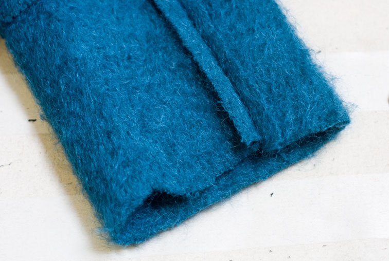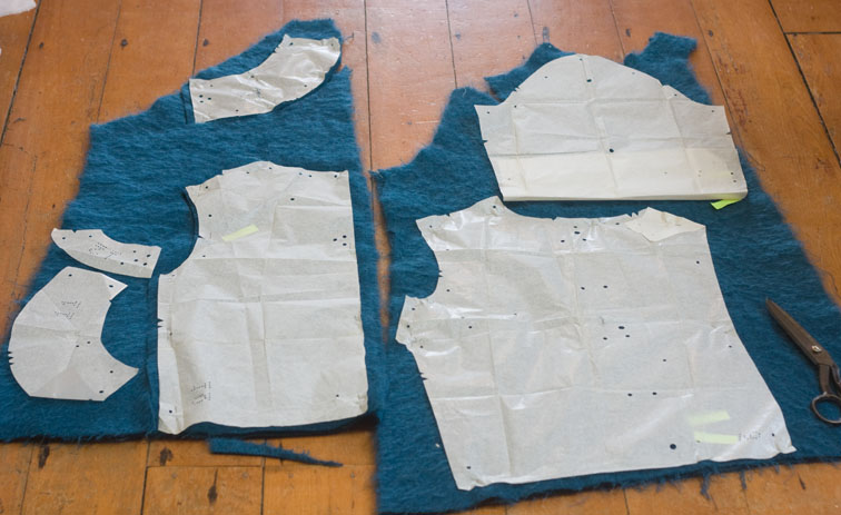 I’m using the inside of the coat as the right side of my jacket.  Due to wear and tear the mohair was extra fluffy in areas, as you can see in some of the photos!  Here’s my progress so far: