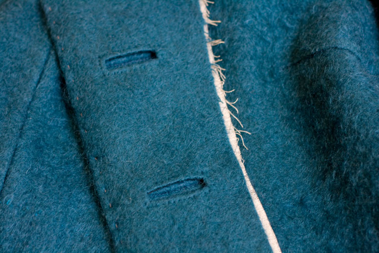Those buttonholes look great – but I agree, that is not my method. I make them in the same way I make welt pockets, just tiny version, and I have never had a problem. Someone recently showed me that method and I thought it was really difficult to get them to match. Lovely color – that coat will look great on you.