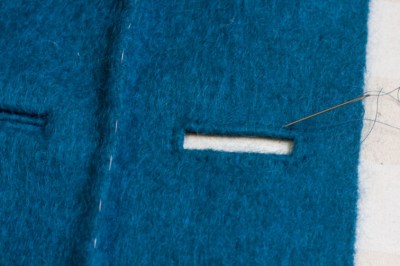 If anybody could make perfect bound buttonholes in this really tricky fabric, it is you Sherry! Magnificent work, as usual. 🙂 You are a master in this very difficult technique. Thank you so much for the very helpful pictures!