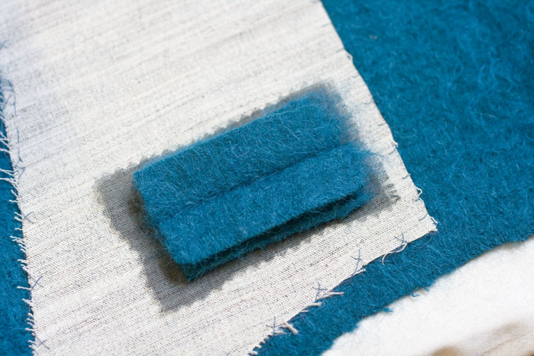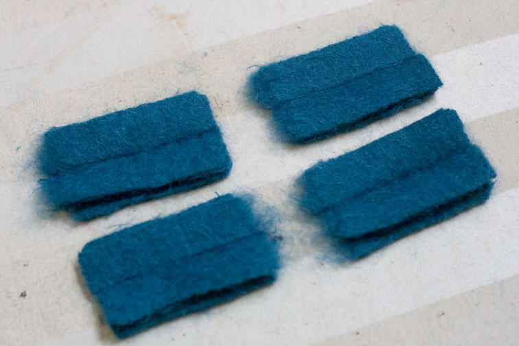 Sometimes with a thick felted fabric I just use a strip of fabric as it does not ravel.Sometimes!